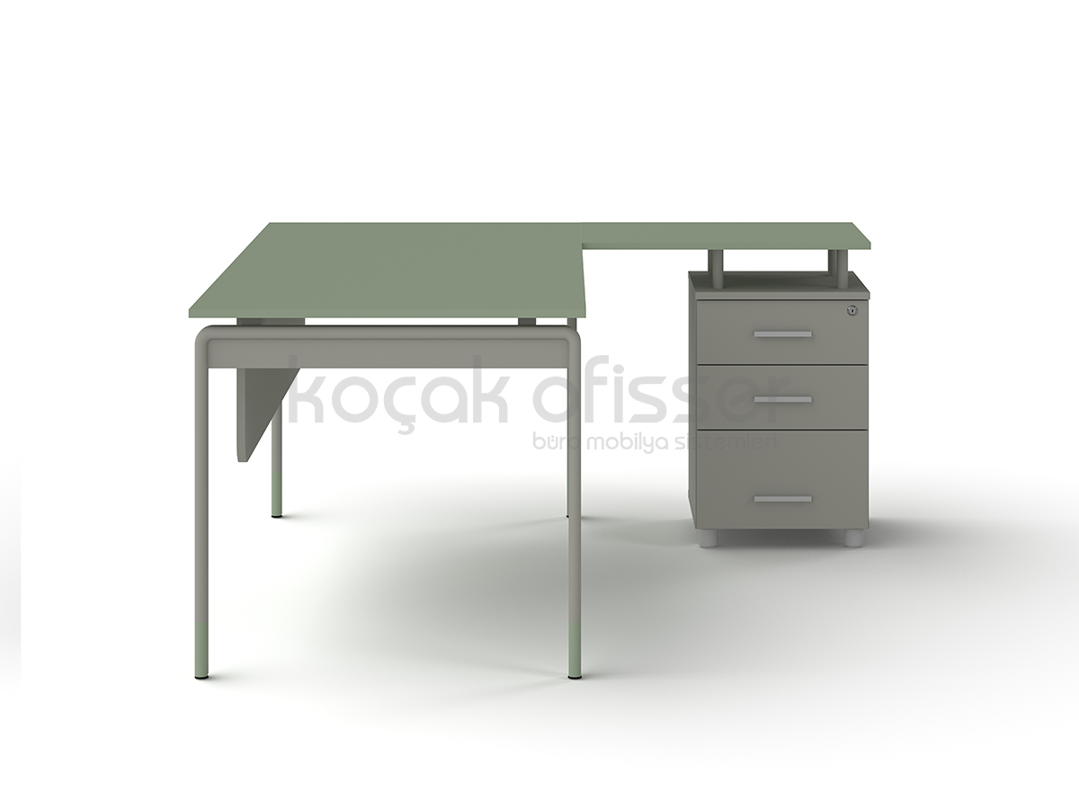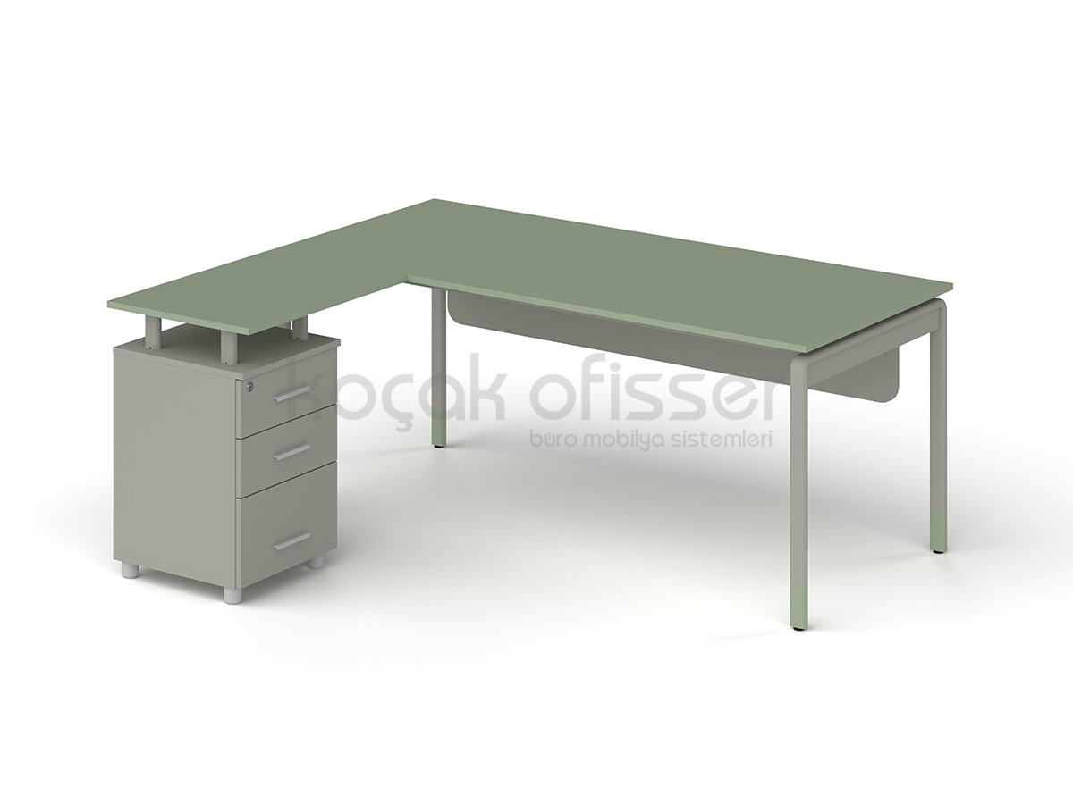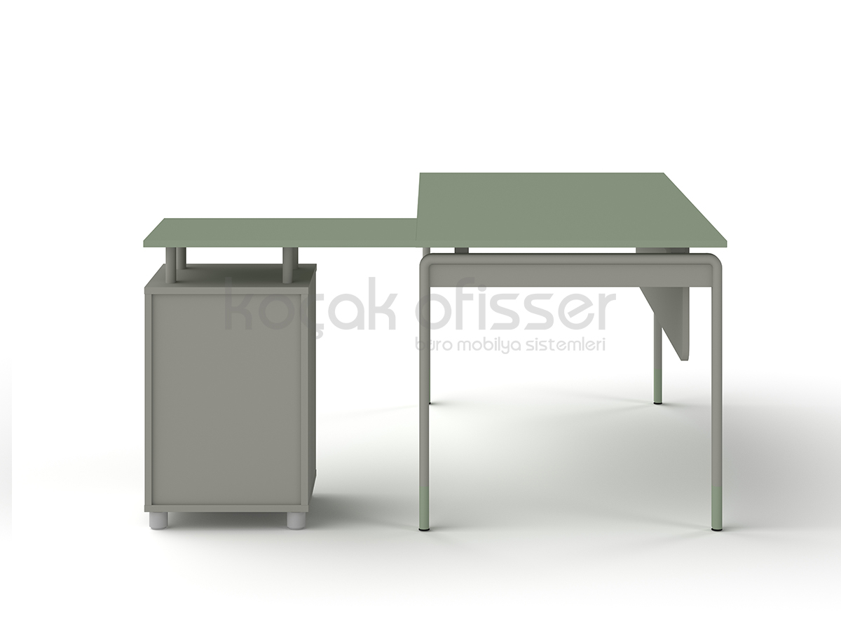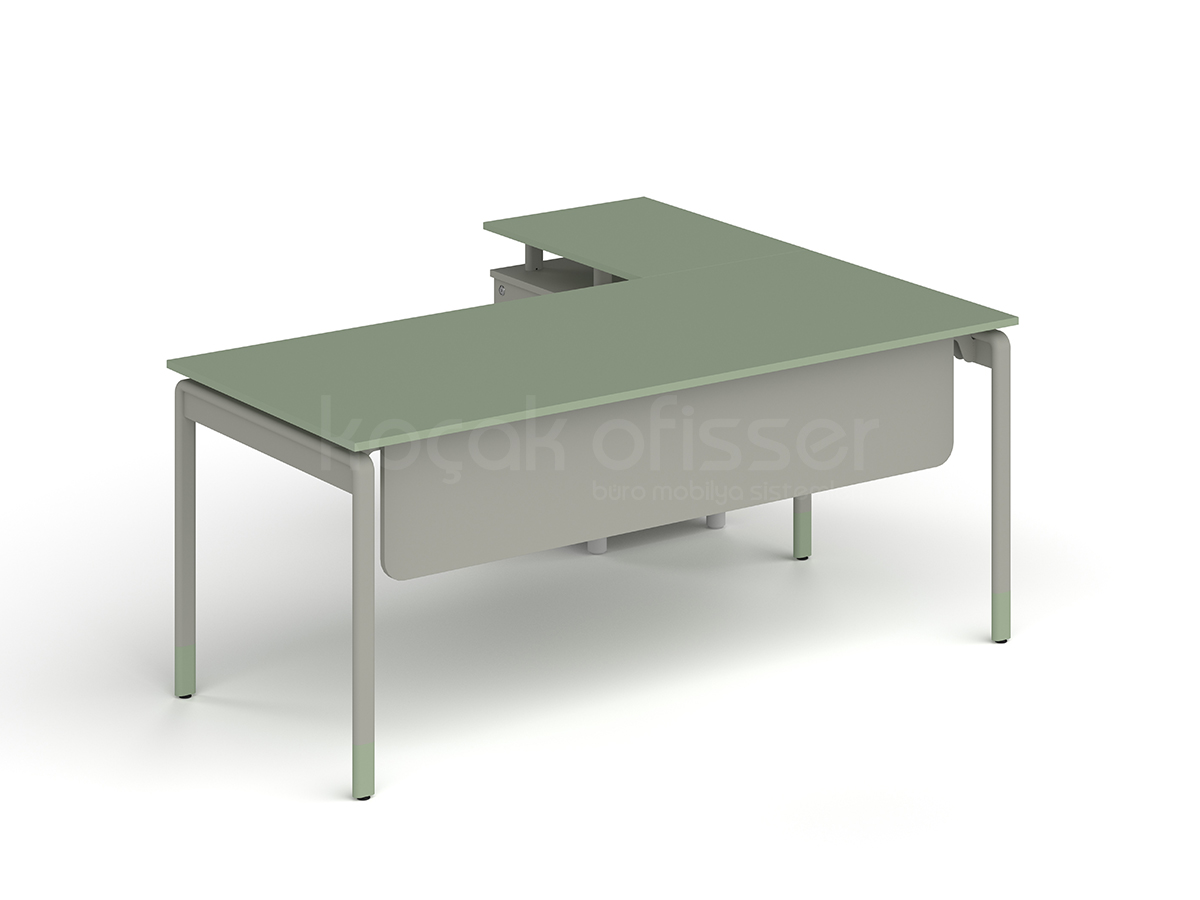 Masa ile aynı ikonik metal ayak ve iskelet yapısına sahip olan tamamlayıcı sehpamız, ofisinizdeki tasarım bütünlüğünü korur. Geniş renk kartelamız sayesinde hem metal aksamlarda hem de ahşap kısımlarda ofis dekorasyonunuza en uygun kombinasyonları oluşturabilirsiniz.