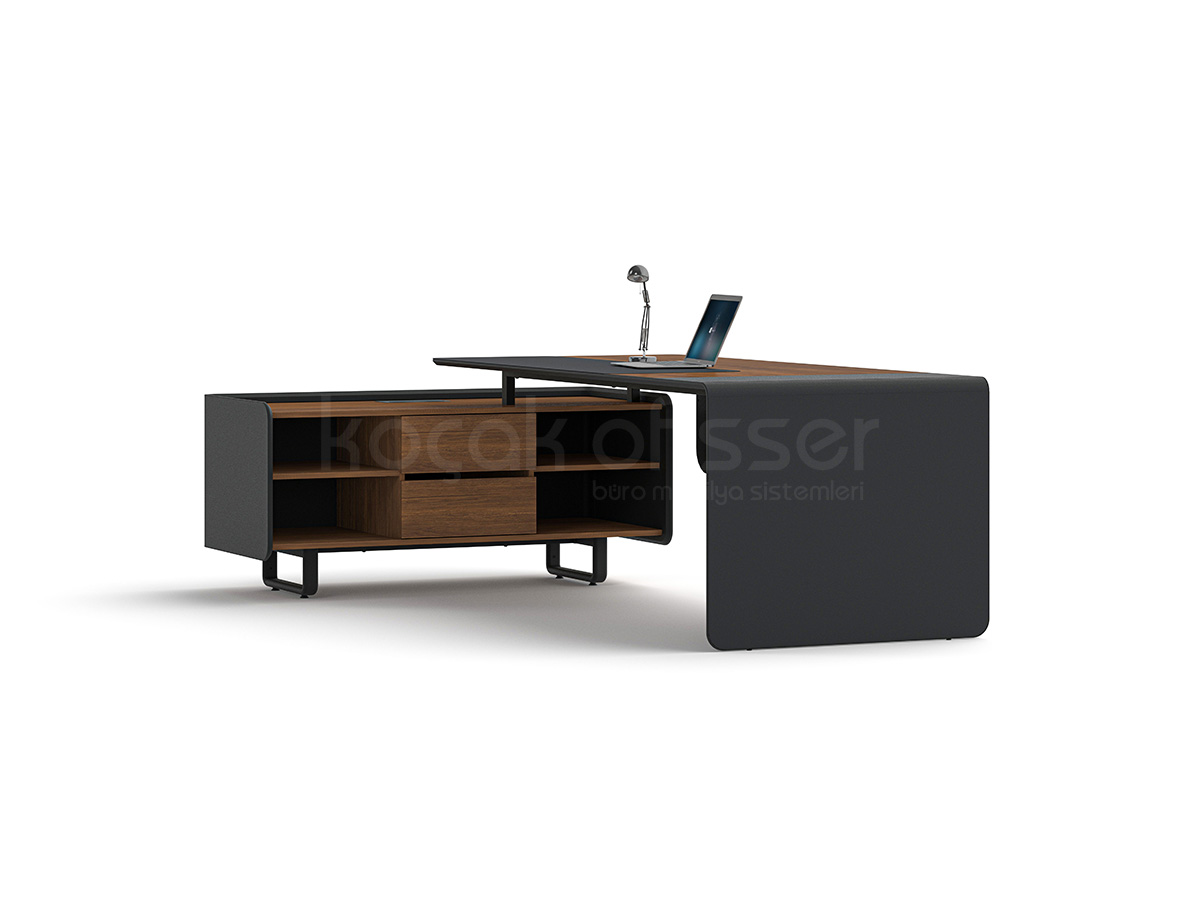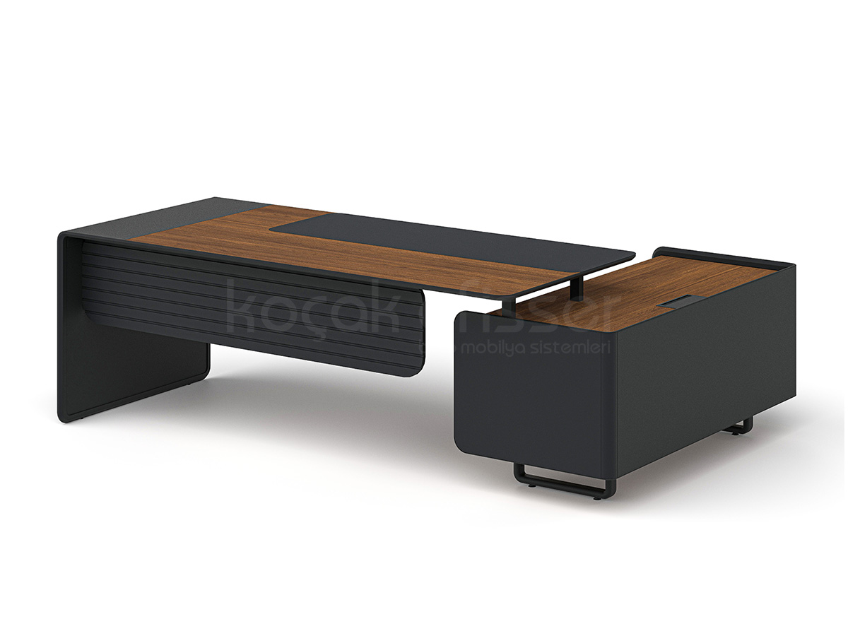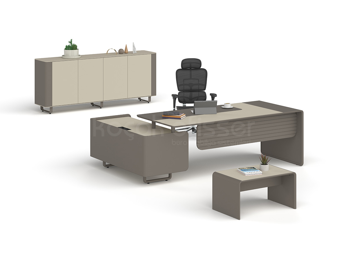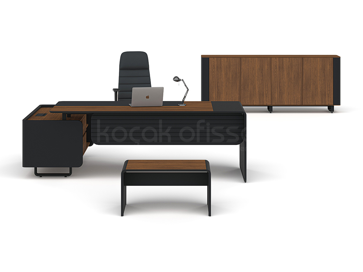 Ligna Etajerli Masa, modern ofis anlayışını güçlü malzeme yapısı ve fonksiyonel detaylarla bir araya getirir. Şık tasarımıyla hem yönetici odalarında hem de prestijli çalışma alanlarında estetik bir duruş sunar.