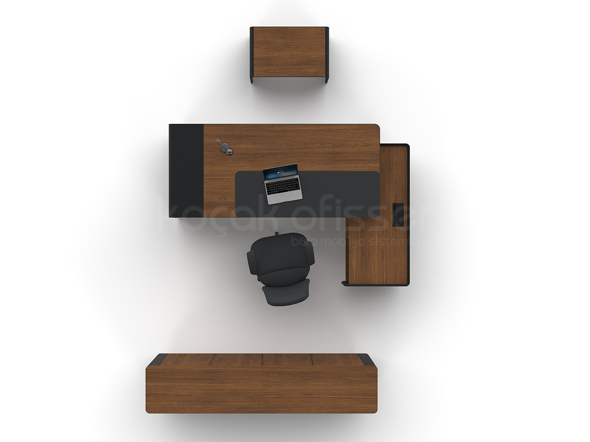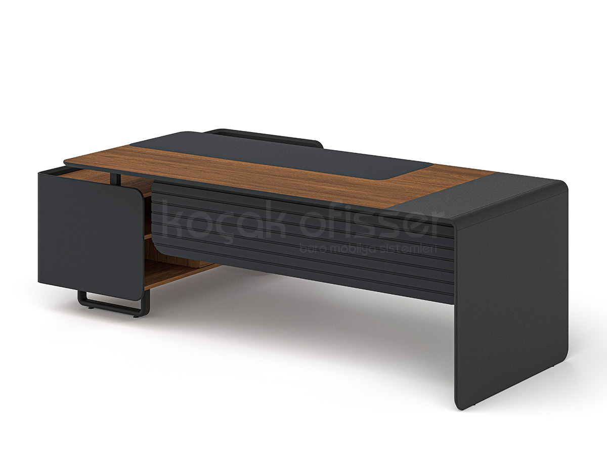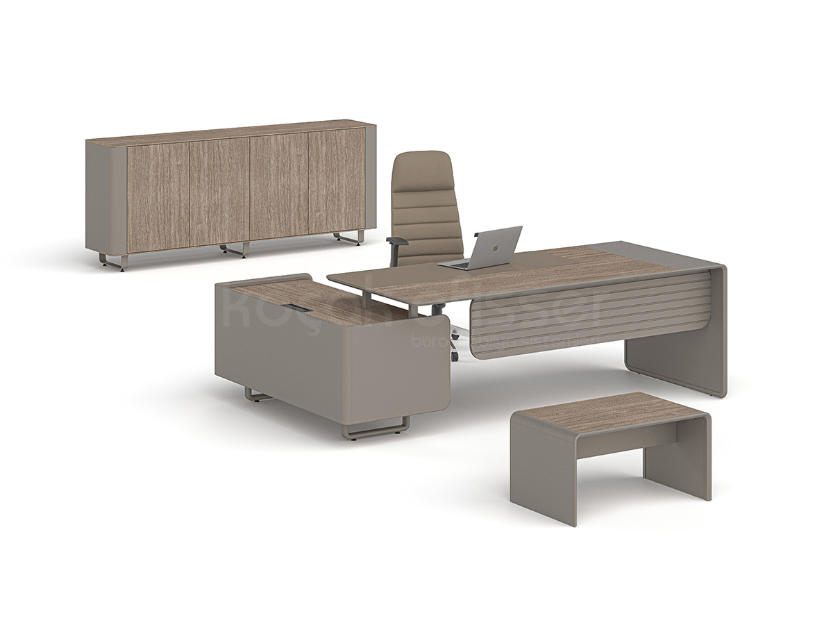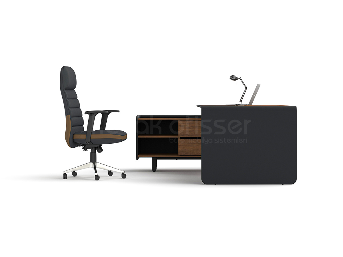 Ligna Etajerli Masa, modern ofis anlayışını güçlü malzeme yapısı ve fonksiyonel detaylarla bir araya getirir. Şık tasarımıyla hem yönetici odalarında hem de prestijli çalışma alanlarında estetik bir duruş sunar.