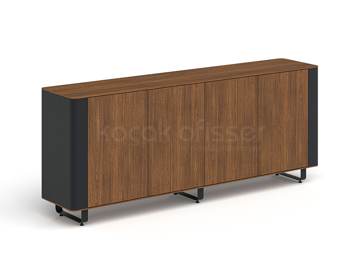Takımın tamamlayıcısı olan 80×50×45 cm ölçülerindeki sehpa, misafir ağırlama veya günlük kullanım için pratik bir çözüm sunar. 220×45×90 cm ölçülerindeki dolap ise 4 kapaklı yapısı ve içindeki 2 raf sayesinde klasör yüksekliğine uygun, düzenli bir depolama alanı oluşturur. Dolap ve etajer ayaklarının metal olması, ürünün genel dayanıklılığını destekler.